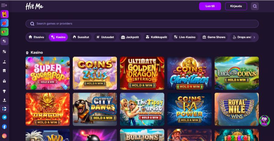 Kun ensimmรคisen kerran klikkasin itseni Hit Me Casinon puolelle, neonvalot melkein hyppรคsi silmille. Sivusto on visuaalisesti tosi energinen, mikรค on mukavaa vaihtelua niille kaikkein kliinisimmille ja tylsimmille pikakasinoille.
