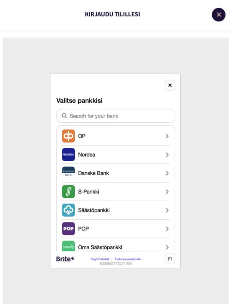 | Talletus- / kotiutustapa | 6/6 | Briten verkkopankkimaksut |
