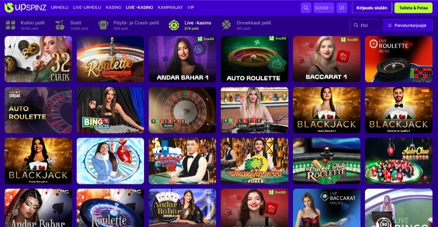 Kun kirjoitin tätä UpSpinz arvostelua, sivuston lukema livekasinon kohdalla näytti peräti 879 peliä. Suurin osa livekasinon peleistä on kokeneiden Evolution Gamingin ja Pragmatic Playn tuottamia. Jo nämä kaksi pelintuottajaa ovat tae laadukkaasta livekasinosta