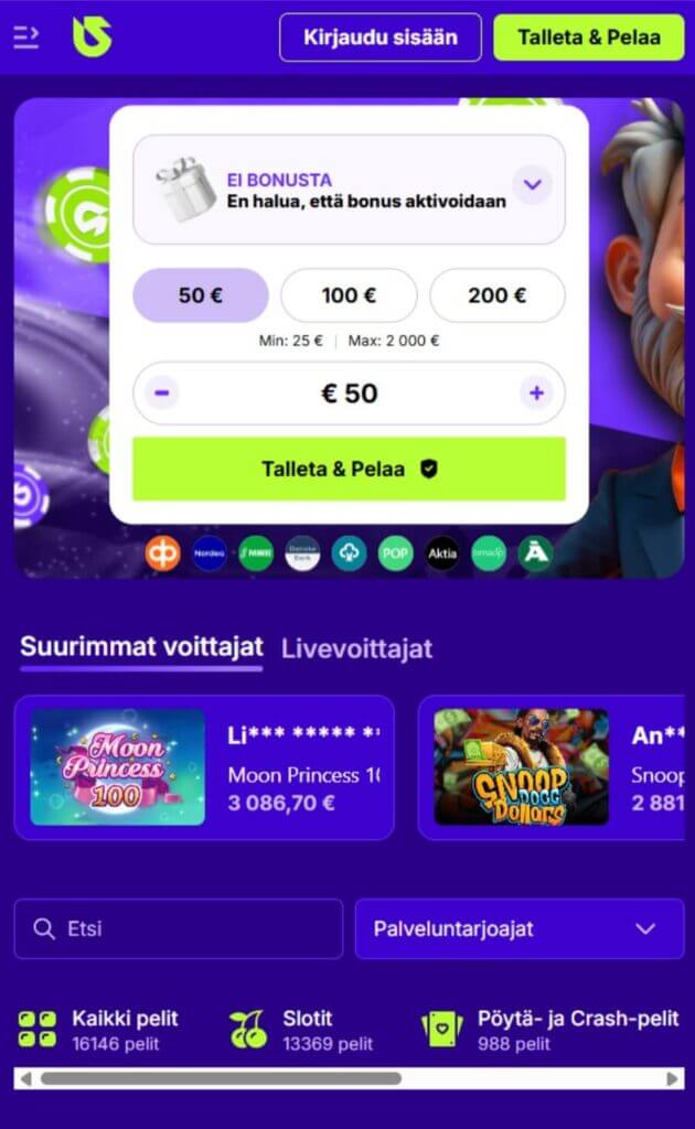 - Plussaa: Helppokäyttöinen käyttöliittymä, nopeat talletukset, runsas kampanjakattaus